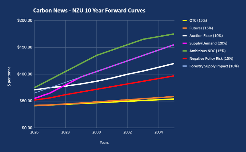 Carbon News has published a new ten-year NZU forward curve mapping how carbon prices could evolve through to 2035 under a range of policy and market conditions.